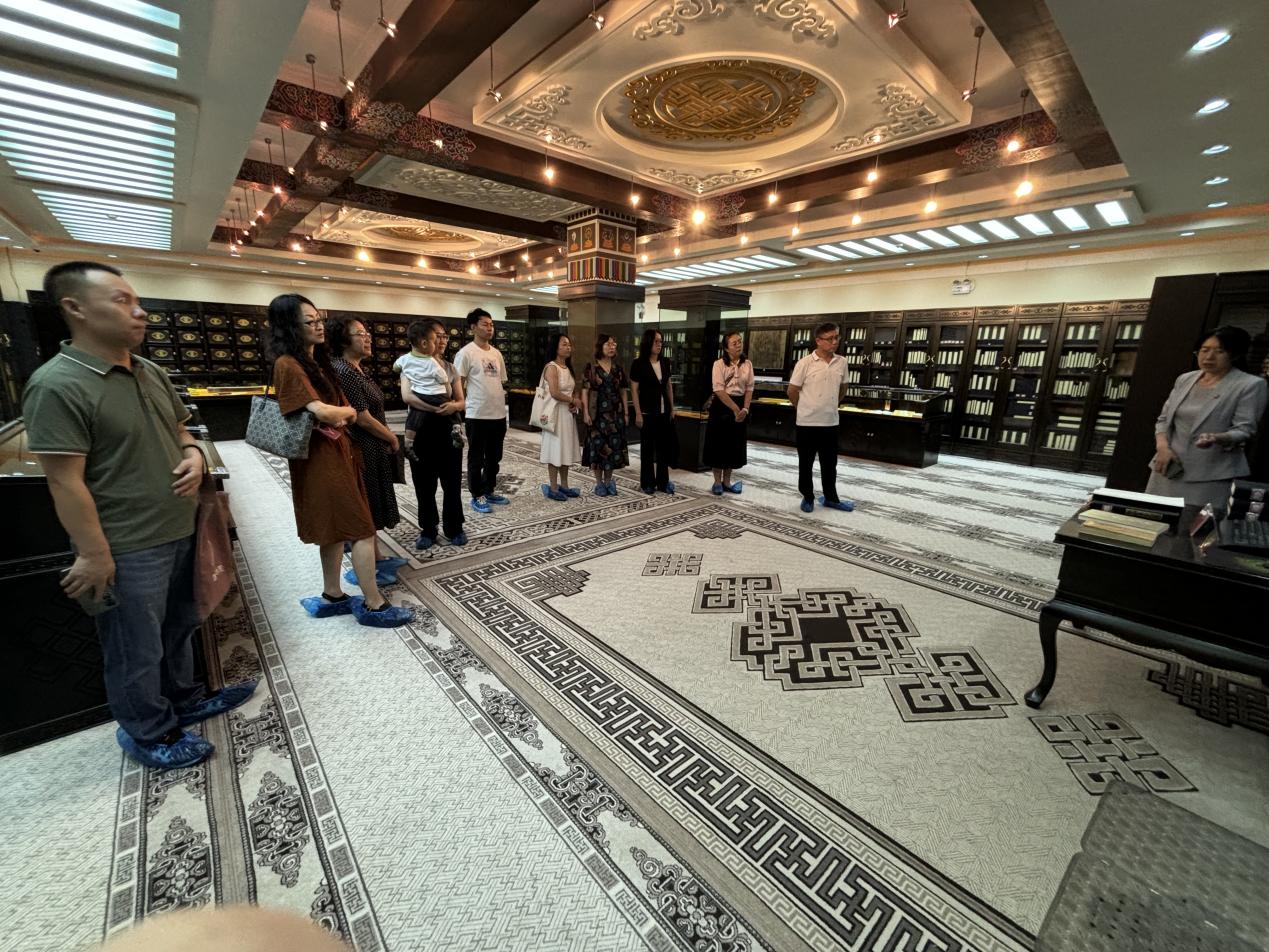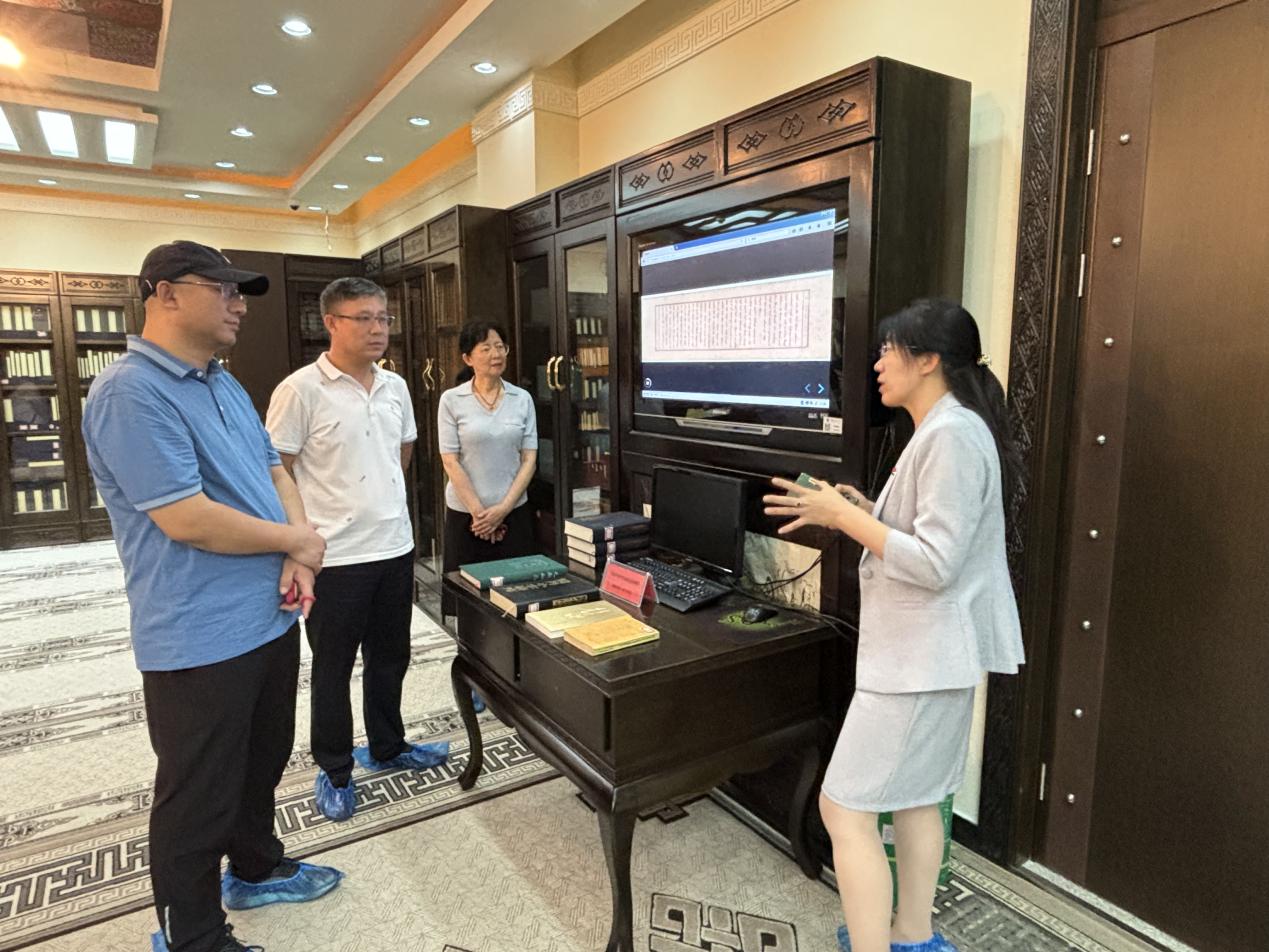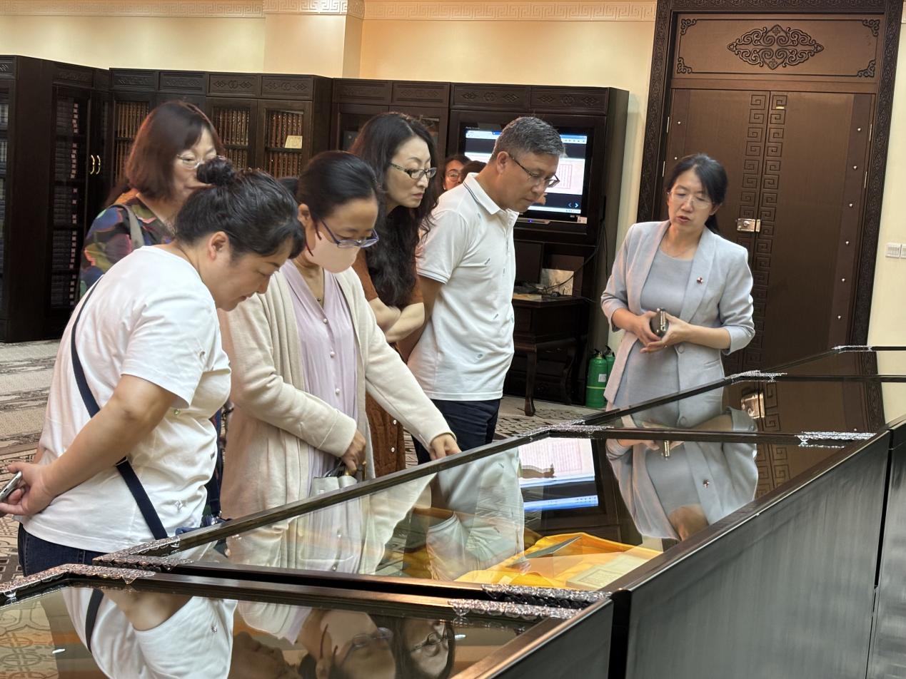 牢记嘱托、感恩奋进,为持续提升外语学科服务自治区两件大事的能力和水平,在习近平总书记考察公司五周年之际,公司领导班子、系主任、各党支部书记20余人,于7月12日上午来到图书馆,开展“重走总书记考视察之路”主题活动,在图书馆蒙古文古籍展阅室,大家认真倾听了讲解员的讲解,并翻阅了公司部分馆藏古籍。