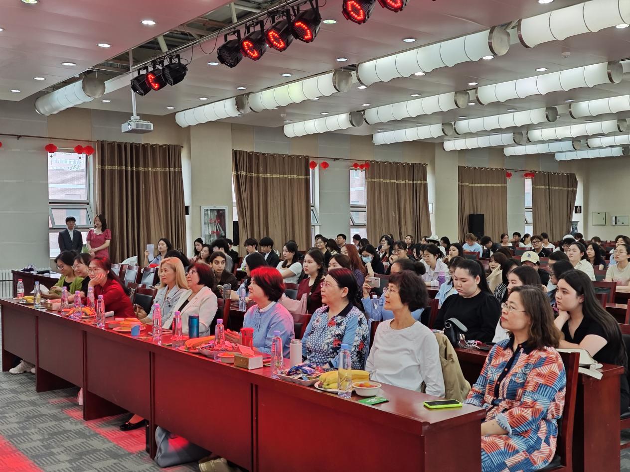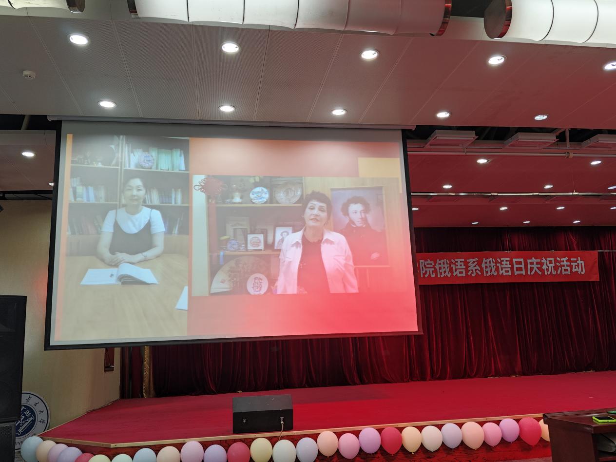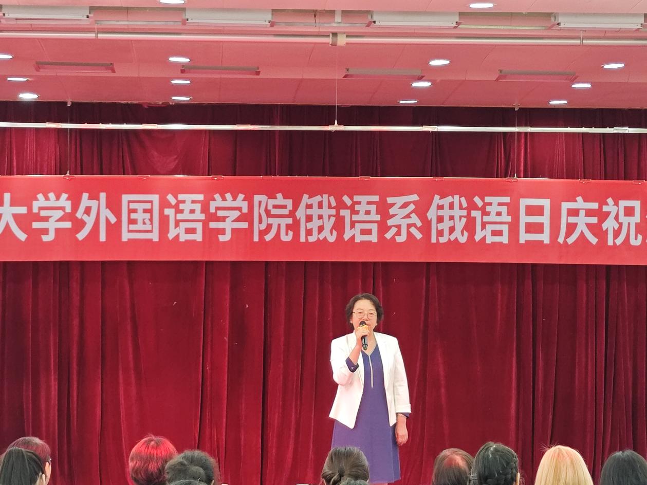 活动伊始,俄语系系主任李玲君教授发表开幕致辞。她表示非常高兴参与此次活动,普希金不仅在俄罗斯,甚至在世界文学史上都占据着重要地位。举办“俄语日”活动的宗旨在于拓展员工的实践活动,激发员工学习俄语的兴趣。她对来自俄罗斯卡尔梅克国立大学的员工们表示热烈欢迎,对俄语系全体师生及外籍教师瓦莲金娜表示衷心感谢,并对同学们的精彩表现充满期待,希望与大家共同度过一段难忘的欢乐时光。