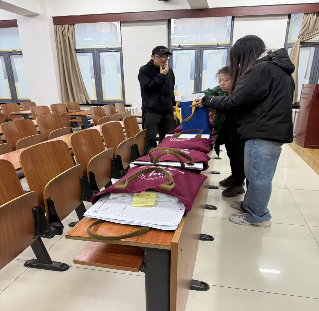 考务老师给监考员分考务袋