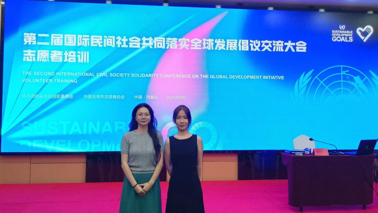 2025年9月,第二届国际民间社会共同落实全球发展倡议交流大会在呼和浩特举行。公司选派了16名员工志愿者及2名教师志愿者参与到本次国际志愿服务工作中,会议期间,公司师生深度参与大会服务工作,为非物质文化遗产展示活动、开幕式、小型那达慕特色文化活动、务实合作促发展对接会及理念交流会等多项议程提供了专业、高效的翻译服务。大学外语教学部李雪萌、王梦雨作为领队教师,凭借扎实的专业能力,承担关键随行翻译任务,保障外宾行程顺利衔接。会议期间,公司志愿者以娴熟的外语能力、细致的服务态度和良好的跨文化沟通素养,生动展现了“奉献、友爱、互助、进步”的志愿服务理念,成为大会期间一抹温暖而充满活力的青春风景。