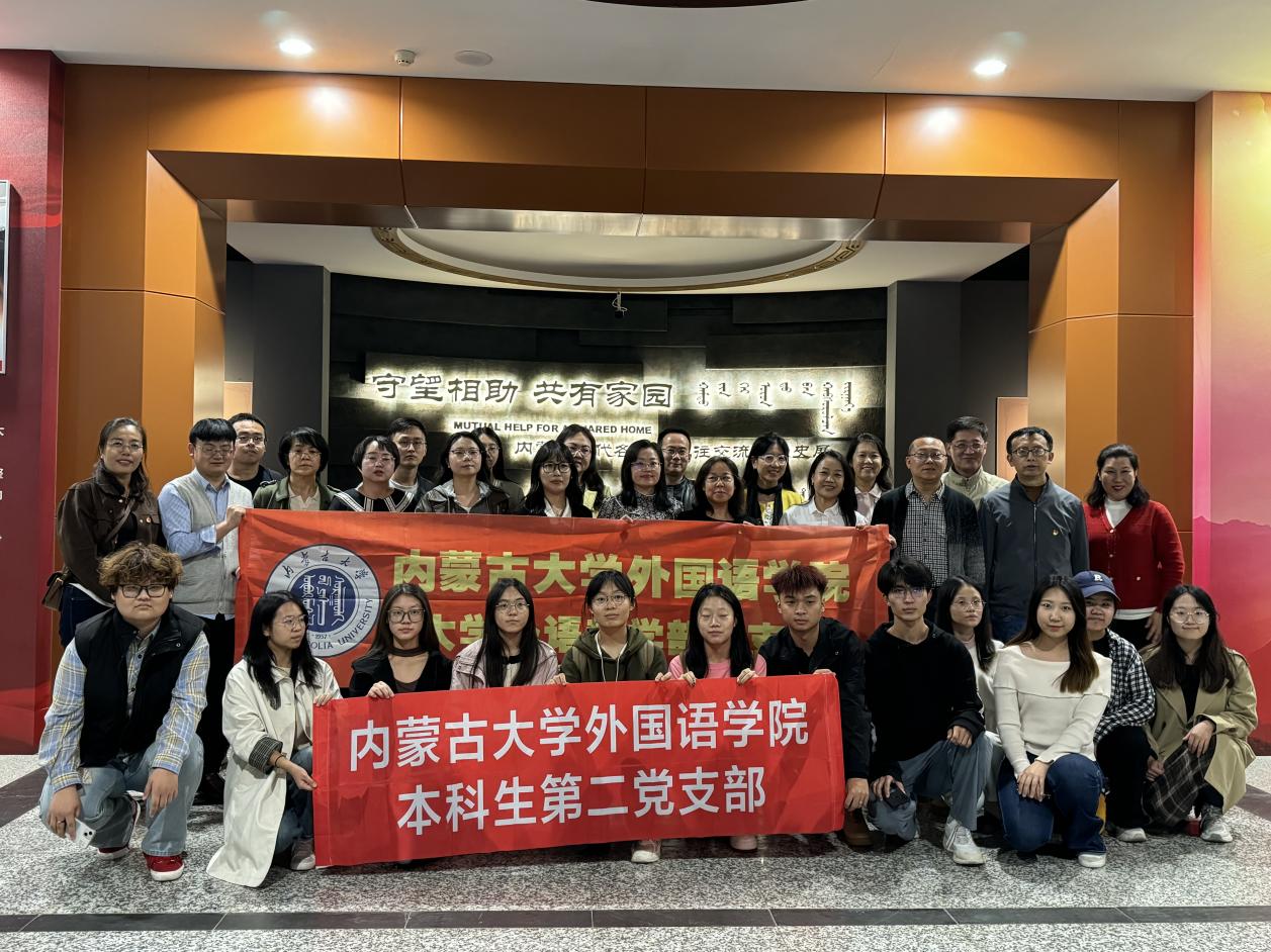 9月24日下午,支部组织全体党员和入党积极分子开展“民族团结进步活动月”主题党日活动,大外党支部与程洁副教授带领的PA视讯官方网站本科生第二党支部一起党建联建,师生共同参观了公司民族博物馆。参观学习后,师生纷纷表示:要不断铸牢中华民族共同体意识,立足边疆,为公司的特色办学和高质量发展而努力学习工作。特别值得一提的是,有一位华侨身份的非党员教师也积极参加了此次党日活动,该教师参观后激动地表示:“作为内大人,在此次活动中学习到了内蒙古的传统历史文化知识并深刻领悟到了总书记的殷切嘱托。作为华侨,参加党建学习活动让我加深了对党建工作的了解和认识,让我更安心在内大扎根发展。”