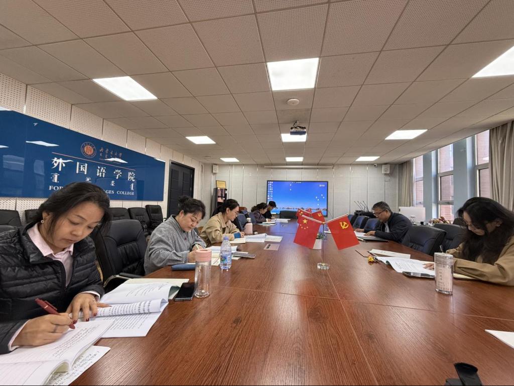 大学外语教学部党支部充分利用“三会一课”、主题党日等组织生活形式,认真学习研讨贯彻党的二十届三中全会精神和全国教育大会精神。支部坚持业务中心工作和党建学习任务同步开展,利用业务工作例会同时完成党建学习宣传。从9月下旬到11月初,支部组织了4次集体学习,集中学习研讨党的二十届三中全会精神和全国教育大会精神,支部书记讲党课“全国教育大会精神解读”1次,收看了2024年高公司党组织系列示范微党课。因获批教育部“双带头人”教师党支部书记“强国行”专项行动团队和内蒙古自治区高校“双带头人”教师党支部书记工作室系列成果,支部书记张红梅赴浙江大学参加了为期5天的“内蒙古自治区高公司党务工作者示范培训班”,专门学习党的二十届三中全会精神和全国教育大会精神、“双带头人”教师党支部书记工作水平与工作方法提升等相关党建内容。