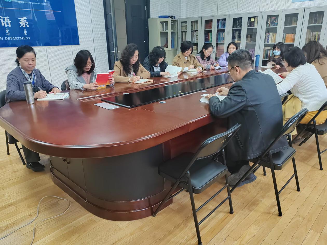 10月31日,英语系党支部全体党员在英语系办公室开展了学习贯彻党的二十届三中全会精神和全国教育大会精神专题学习研讨会。孔令宇老师领学了《中共中央关于进一步全面深化改革、推进中国式现代化的决定》,刘艳春老师领学了习近平《论教育》的部分内容,并要求全体党员同志会后自学有关内容。随后全体与会老师围绕立德树人使命、师德师风建设和人才培养等问题深入研讨。探讨了如何更好地承担政治责任、社会责任,以高质量发展推动团队建设和一流大学建设。