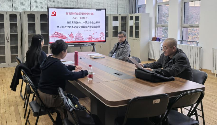 10月31日下午,日语系党支部组织开展专题党课,党课由支部副书记孟宪娣老师主持,部分党员教师参加了学习。通过集体学习,党员老师们更加深刻地认识到中国式现代化的重要性,全面了解我国在政治、经济、文化等不同领域的新政策、新举措、新方向,激发了大家为实现中国式现代化而奋斗的激情与决心。党课第二部分由孟宪娣老师带领大家集中学习了习近平在全国教育大会上的讲话精神,并从思政课建设、团队建设、人才培养、团队队伍建设等方面作了交流发言。参会党员教师一致表示,目前日语专业面临着时代发展带来的挑战与机遇,老师们要围绕落实立德树人根本任务,充分发挥外语学科优势,加快构建全新的课程、学科与学术体系,在创新人才培养与国家战略对接方面发挥重要作用。