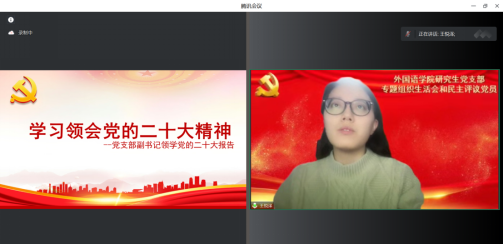会议第四项,党支部副书记王悦泽老师领学党的二十大精神,此次领学进一步增强了党员同志的政治责任感和历史使命感,提醒党员同志时刻把党的二十大精神落实到具体工作、学习中,立足岗位职责,扎实工作。