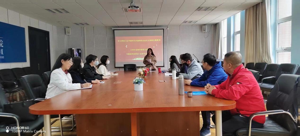 大学外语教学部党支部坚持“三会一课”,认真组织支部组织生活,凝心聚力,扎实推进主题教育,认真践行主题教育总要求“学思想、 强党性、重实践、建新功”,争做名副其实的“最强党支部”。