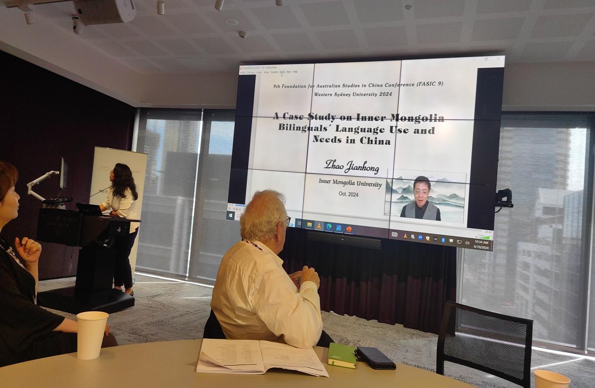 张红梅副教授在西悉尼大学现场参加了为期四天的两个研讨会,并在ACTS 10大会做了报告,题目为: A Report on the English - Chinese Translation of Jane in Love。该报告介绍了张红梅副教授翻译团队完成的一部澳大利亚文学作品Jane in Love的英译汉过程以及该译著的出版价值。赵剑宏副教授因签证通过时间晚于既定航班行程,经与组委会沟通,以线上参会方式,在FASIC 9大会做视频报告,题目为:A Case Study of Inner Mongolia Bilingual Speakers' Language Use and Needs in China,汇报了语言田野调查的研究过程与结论。二位教授的现场报告得到大会现场的热烈反馈和好评,对于在华澳大利亚研究尤其是促进pa集团官方网站澳大利亚研究中心的国际影响力提升和高质量发展起到了积极作用。