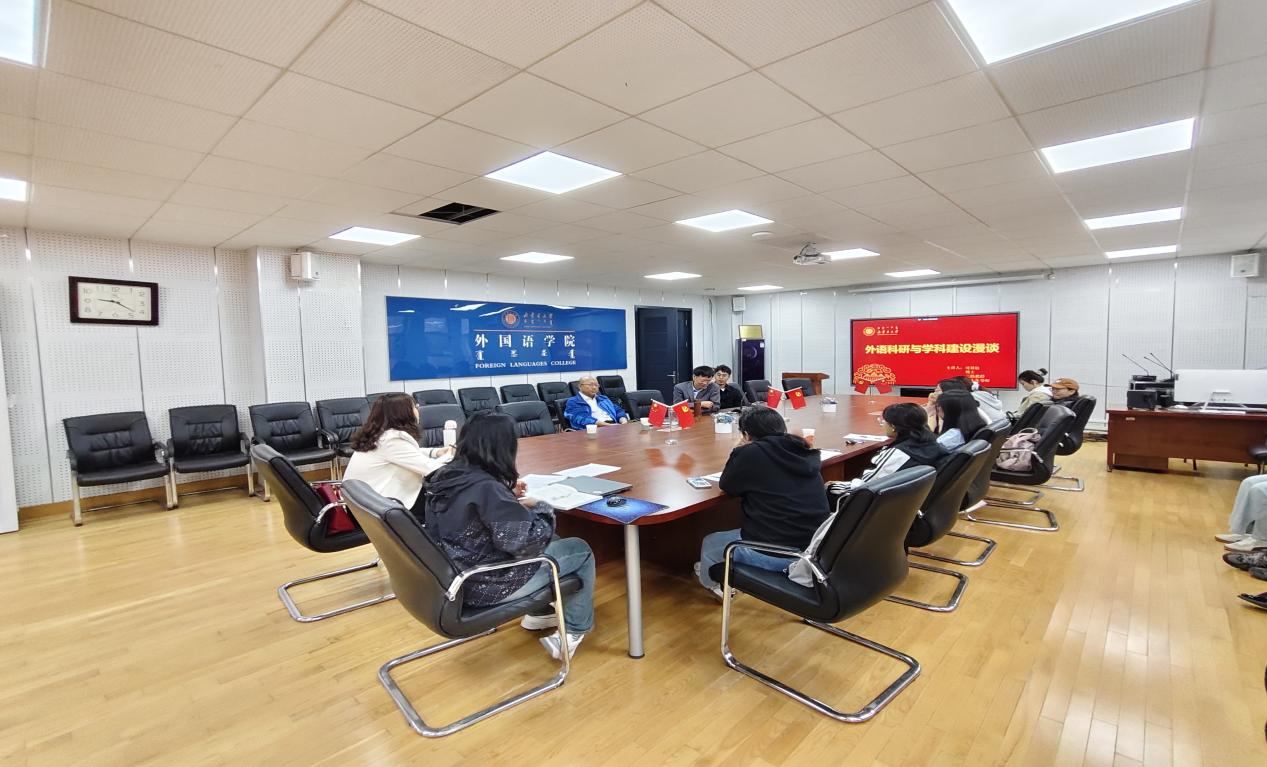 接着,司显柱教授与参会师生交流了外语学科建设和管理方面的经验。司教授指出,外语团队建设和发展要紧紧围绕国家发展战略和政策,紧密结合地域特点与民族特色,充分发挥自身优势,讲好内蒙古的故事、传递中国好声音、培养高级别国际传播人才。外语学科的发展强调国家意识,提升国家外语能力,以满足国家经济社会发展的需要。在此过程中,构建具有中国特色的知识体系和话语体系变得尤为重要。同时,学科的交叉融合成为发展趋势,外语学科正通过整合人文科学、社会科学、自然科学等多学科知识,推动区域国别学等交叉学科的研究,促进中外文化交流与文明互鉴。司教授还指出,人才培养是团队建设的第一要义。在平时的管理中,要努力实现管理的精细化,聚焦几个具有专业和地域优势的方向,凝心聚力,共谋发展机遇。为了实现这些目标,司教授强调,外语学科需要处理好传统二级学科与新兴交叉学科之间的关系,平衡学科发展理念与建设实践,解决团队建设同质化与特色发展的问题,以及适应新时代教育评价体系的变革。通过这些措施,外语学科将更好地适应新时代的要求,迎接挑战,为国家的发展贡献力量。