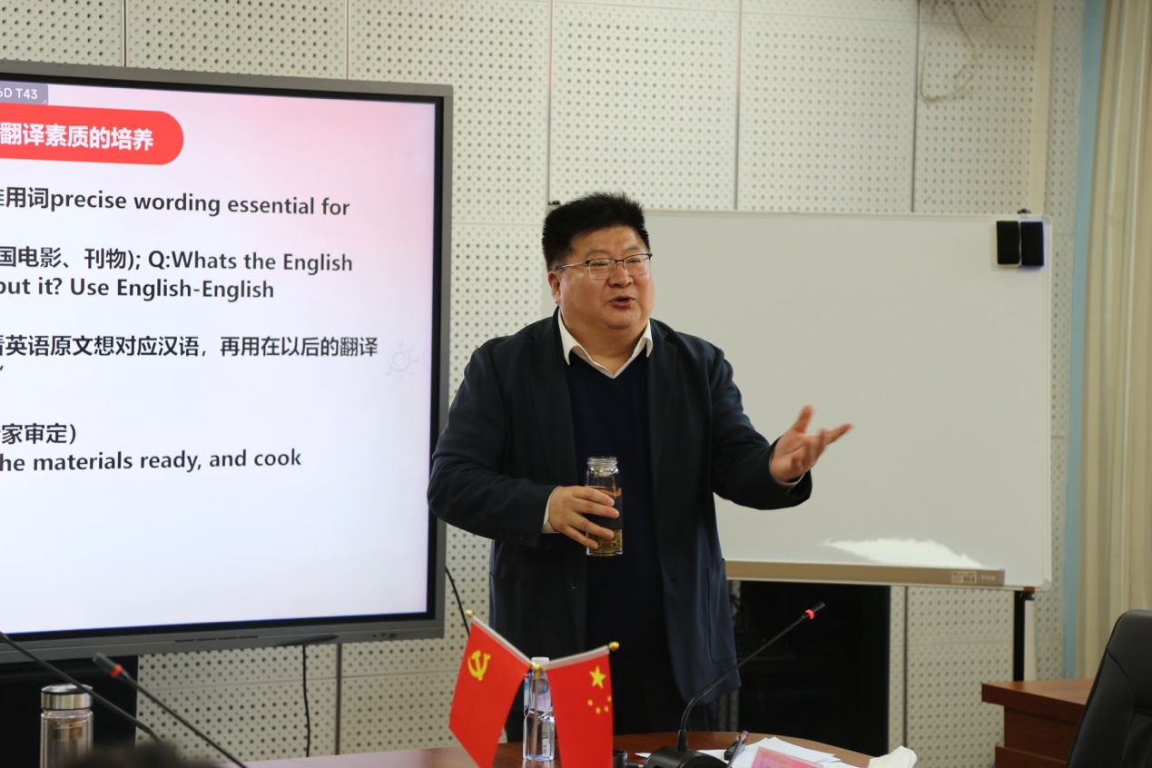 2025年5月14日下午,“外国语言文学研究基地论坛”第134讲在公司会议室举行。主讲人为黑龙江省政府外事办公室二级巡视员、黑龙江省政府首席英文翻译、黑龙江大学英语翻译硕士校外导师银扫尘老师,讲座由公司经理李满亮教授主持,公司师生参加。